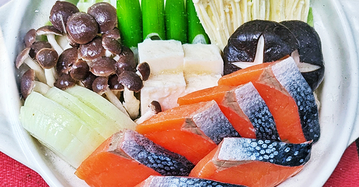 石狩鍋の主役はもちろん鮭ですが、名脇役も豊富で、キャベツ・白菜・玉ねぎ・長ねぎ・大根・にんじん・ごぼう・さやいんげん・しいたけ・えのきだけ・しらたき・豆腐・じゃがいも・バターや牛乳・山椒やしょうがなどを隠し味に使う場合もあり、北海道産の野菜をたっぷり入れることで甘みと旨みが増し味噌スープと溶け合います。